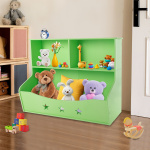 Міцний матеріал: Виготовлений з ПВХ плити з процесом різьблення, цей продукт є зносостійким, стійким до деформації, міцним, безбарвним, без запаху та корисним для людей похилого віку, вагітних жінок і маленьких дітей. Доступний: Відповідна висота (24,21 дюйма) дозволяє дітям самостійно діставати та складати свої книги та іграшки, щоб розвивати свою незалежність. Помічник комірника: Два вертикальних відділення та великий нижній кошик забезпечують багато місця для сортування та зберігання книжок з картинками, журналів та книг (за винятком), а відкрита конструкція полегшує зберігання та доступ до іграшок вашої дитини (за винятком). у звичку організовувати під час гри. Крім того, верхня платформа забезпечує додатковий простір для фоторамок, декорацій та багато іншого. Висока стабільність: Товсті ПВХ-панелі та численні гвинти надають виробу міцну структуру, тож ви можете впевнено ним користуватися. Милий зовнішній вигляд: Світло-зелена колірна гамма, милий малюнок пентаграми та плавні лінії надають цьому виробу милий і привабливий зовнішній вигляд, який можна легко інтегрувати в різні місця та пробуджувати інтерес людей до читання.
