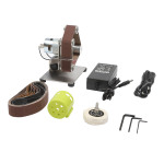 Він оснащений шліфувальними стрічками та полірувальним диском для шліфування та полірування заготовок. Крім того, можна встановити шліфувальні круги, свердла та гнучкі вали (не входять до комплекту) для виконання різноманітних процесів обробки, таких як різання та гравірування.