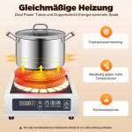 Він підходить для магнітних плоских каструль з нержавіючої сталі, емальованих і залізних каструль діаметром 4,72-11,81 дюйма. Його можна використовувати на домашній кухні, для приготування їжі на задньому дворі, у фургонах, готелях, ресторанах, кіосках, ресторанах з гарячим посудом, їдальнях тощо.
