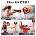 ВИСОКОШВИДКИЙ М'ЯЧ ДЛЯ ПІДБОЮ Наша рефлекторна сумка з тримачем оснащена надувним швидкісним м’ячем із поліуретанової шкіри, стійким до зношування та антистарінням, міцним і зручним для ваших рук. Конструкція швидкої реакції допомагає збільшити швидкість удару та еластичність м’язів. СПІННІНГ 360° REFLEX Рефлекторний боксерський мішок, що обертається на 360°, ідеально підходить для тренування вашої реакції, точності та спритності. Гнучка планка обертання на 360 градусів дозволяє не тільки тренувати м'язи рук, схуднути, але і покращувати координацію і швидкість реакції. ВЕЛИКА ТА МІЦНА ТРУБНА ОСНОВА Діаметр 53 см. Дно цього окремого тримача для боксерської груші можна наповнити водою або піском для стабілізації. 14 присосок на дні запобігають подряпинам на підлозі і не трясуться під час боксу. Підходить для гладких поверхонь. Ви також можете розмістити його на плитці, дерев'яних дошках або бетонній підлозі. Тренування боксу для офісу/дому Стояча боксерська груша висотою приблизно 190 см, діаметром 26 см. Боксерські рукавички в комплекті. Ідеальний подарунок для дорослих і підлітків для зняття стресу та базової фізичної форми в офісі та вдома. КОНСТРУКЦІЯ З РЕГУЛЮВАННЯМ ВИСОТИ Набір боксерських груш з опорою для дорослих, змінної висоти від 1,2 м до 1,9 м, підходить для людей різного віку та зросту. Регулюється за розміром дітей. Ідеально підходить для спа-салонів, тренажерних залів, боксерських клубів, дому тощо. Компактний дизайн можна легко зберігати в кутках і економить місце. Експерт з навчання Гнучка рука, що обертається на 360°, м’яч для відскоку на 90° і більш товсте губчасте покриття можуть допомогти вам ефективно наносити удари на високій швидкості в імітованих реальних боях, покращуючи ваші навички ухилення та реакції. Вишуканий дизайн Боксерський м'яч виготовлений з поліуретану з товстим гумовим покриттям для забезпечення невеликих вм'ятин і швидкого відновлення при ударі, що зменшує вплив на руки і робить удар більш комфортним. Його амортизаційна конструкція для тихого удару забезпечує плавний і тихий удар. Висока стабільність На дні є 14 присосок для міцнішої фіксації. Крім того, його збільшену основу можна наповнити водою або піском (не входить в комплект) для збільшення ваги. Навіть під час високоінтенсивних тренувань він може підтримувати стабільність і гарантувати безпеку тренувань. Гнучке навчання Висоту опорної штанги можна легко регулювати за допомогою кнопок (130-157 см), і ви можете встановити маятник, щоб задовольнити різний зріст і тренувальні потреби тренерів і підвищити гнучкість тренувань. Економія місця Він має невелику площу (діаметр основи: 19,7 дюйма), тому ви можете легко розмістити його в кутах, на балконах та в інших місцях, не займаючи зайвого місця, дозволяючи займатися спортом у будь-який час і в будь-якому місці. Технічні характеристики Матеріальний: ПУ, гума, губка, ПНД, сталь Лікування: Процес гальванічного покриття Стиль: Сучасний Колір: Червоний Чорний Потрібна збірка: Так. Тип кріплення: Підлоговий монтаж Вікова група: дорослі, діти Кут повороту маятника: 360° Кут відскоку ударного м'яча: 90° Регульований діапазон висоти: 130,5-157,5 см/51,4-62 дюйма Розмір основи (Д x В): 50x33 см/19,7x13 дюймів Довжина губки: 36 см/14,2 дюйма Висота панчболу: 19,5 см/7,7 дюймів Довжина маятника: 59 см/23,2 дюйма Розмір упаковки: 52x40x54,2 см/20,5x15,8x21,3