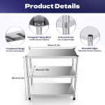Підставка з нержавіючої сталі Cncest 3-рівнева, 80x40x80 см, вантажопідйомність 20-30 кг на шар, висота регульована, анодована, фото 9