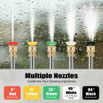 Високоефективний: Він оснащений двигуном потужністю 7,5 к. с., який розвиває швидкість до 3400 обертів за хвилину, тиск 2200 фунтів на квадратний дюйм і швидкість потоку 2,3 галона за хвилину, швидко виконуючи найскладніші завдання прибирання. Тепер насолоджуйтеся швидким рішенням для видалення стійких плям, яке робить прибирання простим, ефективним і легким! Кілька насадок: Використовуйте 5 різних насадок, щоб персоналізувати свій досвід очищення, дозволяючи легко перемикатися між різними режимами розпилення! Червоний і жовтий — вузькі сопла 0° і 15° з високим тиском; Green — насадка 25°, яка використовується для більших площ для покращеного очищення; Білий — це сопло нижчого тиску з кутом ширини 40°; Чорна насадка з кутом 84° утворює рясну піну для полегшення очищення. Довгий діапазон: Два 8-дюймових гумових колеса та тонка зручна верхня ручка дозволяють легко переміщати машину під час процесу очищення. Вбудована вхідна труба довжиною 2 м і випускна труба 8 м розширюють вашу робочу зону та маневреність, дозволяючи насадці легко висунутися в будь-який кут і мінімізуючи обмеження простору Зручне водопостачання: Щоб надати вам більш зручну та комфортну взаємодію з користувачем, його було ретельно розроблено, щоб забезпечити більше налаштувань. Ви можете вибрати між двома способами подачі води: самовсмоктування та підключення до крану. Фільтр: Він оснащений фільтром, щоб вода, що протікає, була чистою, щоб уникнути засмічення та пошкодження внутрішньої частини машини. Практичні гачки: Два гачки з обох боків дозволяють легко зберігати шланг і пістолет-розпилювач, коли вони не використовуються. Подушечка для ніг: Дві гумові підкладки для ніг знизу забезпечують стабільність і запобігають нещасним випадкам, спричиненим випадковим зісковзуванням машини. Гнучкий пістолет: Ергономічна вигнута рукоятка пістолета-розпилювача має невелику лопатку, яка може утримувати наконечник, щоб запобігти раптовому включенню пістолета-розпилювача. Крім того, якщо ви хочете замінити сопло, просто посуньте пряжку у верхній частині пістолета-розпилювача назад для швидкої заміни. Невелика потреба в просторі: Завдяки компактним розмірам він не обтяжує місце для зберігання. Це як маленький зручний візок, який можна легко засунути в маленький куток для зберігання. Тривалий термін служби: Паливний бак об’ємом 0,95 галонів зручний для дозаправки та тривалого використання, що дозволяє уникнути клопоту частої дозаправки. Споживання палива менше 0,84 фунта/кВт/год також доводить, що це економічний вибір. Технічні характеристики Матеріальний: Гума, ПВХ, литий алюміній, залізо Колір: Чорний червоний Стиль: Сучасний Режим запуску: Посібник Обробка поверхні: Фарбування спреєм, анодування Виступ: На бензині Мотор: 4-тактний, одноциліндровий, повітряного охолодження Потрібна збірка: Так. Сопло: 0°(червоний), 15°(жовтий), 25°(зелений), 40°(білий), 84°(чорний) Швидкість: 3400 об/хв Виступ: 7,5 к.с Потік: 2,3 GPM Друк: 2200 PSI Тип бензину: 92# або 95# Ємність паливного баку: 3,6 л/0,95 гал Ефективність палива: ≤ 385 г/0,84 фунта/кВт/год Вага брутто: 29,5 кг/65 фунтів Вага нетто: 26,6 кг Розмір коліс: 20 см Довжина підлокітника: 43 см Довжина розпилювача: 54 см Довжина шатуна: 38 см Довжина вхідної труби: приблизно 2 м Довжина дренажної труби: приблизно 8 м Розмір продукту: 56х50х81 см Розмір упаковки: 54х48х54 см Вміст пакету 1 м