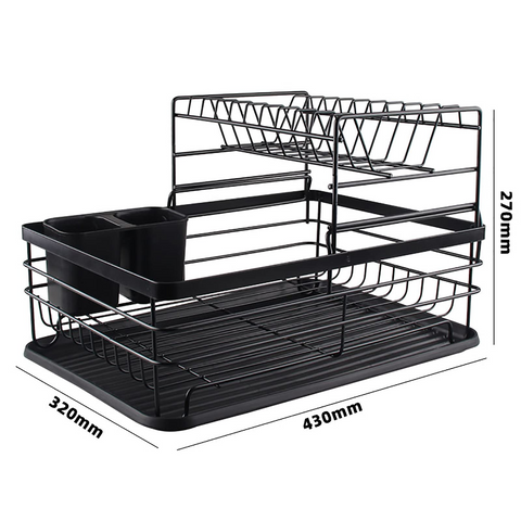 Компактність і велика місткість: вертикальна 2-рівнева решітка для посуду розміром 43 x 32 x 27 см займає менше місця на прилавку, але має більшу місткість.Зберігайте кухонну стільницю сухою: Конструкція нижнього піддону для зливу води дозволяє зливати краплі води та зберігати посуд для зберігання сухим і чистим.Специфікація: