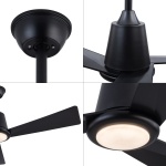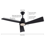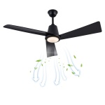 Стельовий вентилятор з LED світильником Cncest 132 см, 35 Вт, 6 рівнів швидкості, реверс, пульт дистанційного керування, чорний