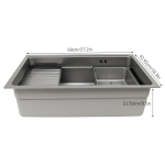 Міцний Виготовлений з нержавіючої сталі 304 і 201 з тисненням і процесом нано-запікання, цей продукт не легко піддається корозії, зносу або деформації, тому ви можете використовувати його протягом тривалого часу. Сильна функція Дошку для розморожування і чашу в раковині можна переміщати вліво і вправо, що робить його зручним для очищення фруктів і овочів і приготування їжі. Велика раковина забезпечує простір для повсякденних мисок і посуду для легкого миття. Кришка тазу в раковину дає можливість зберігати або зливати воду при необхідності. Тихий і захисний дизайн Мийка оснащена малошумною накладкою для зниження шуму під час роботи. Крім того, конденсатне покриття може ефективно захистити вашу шафу від вологи. Сучасний і простий Невибагливий колір, проста форма та плавні обтічні лінії надають цій раковині сучасний і простий вигляд, який підходить для більшості побутових стилів. Доступні варіанти установки Існує три способи монтажу (на стільницю, під стільницю та в середину стільниці), тому ви можете вибрати відповідно до ваших уподобань або конкретної ситуації в кімнаті. Легко чиститься Округлий дизайн, проста структура та гладка поверхня дозволяють легко чистити цей виріб за допомогою м’якої тканини та води, не витрачаючи багато часу та зусиль. Трикутний кошик Його можна використовувати для відділення бруду. Зливний кошик Ви можете підняти кошик і злити воду або натиснути його вниз, щоб зберегти воду. Отвір проти переливу Він може ефективно запобігти переповненню води, якщо ви вчасно не перекриєте кран (не входить в комплект). Технічні характеристики Колір: Сірий, срібний Форма: Прямокутна Стиль: Сучасний Матеріальний: Нержавіюча сталь 304, нержавіюча сталь 201 Процедура: Тиснення та нановипічка Потрібна збірка: Так. Тип кріплення: Під столом, посередині стільниці, на стільниці Розмір продукту: 69*43*21,6 дюймів/27,2*16,9*8,5 дюймів Розмір упаковки: 76*50*29 см/29,92*19,69*11,42 дюйма Вага брутто: 8,6 кг/18,96 фунтів Вага нетто: 7,8 кг/17,2 фунтів 1* Мийка з нержавіючої сталі 1* дошка для розморожування 1* раковина в раковині Інші аксесуари для монтажу Технічні характеристики | Колір | Сірий, срібний | Форма | Прямокутна | | Стиль | Сучасний | Матеріал | Нержавіюча сталь 304, нержавіюча сталь 201 | | Процедура | Тиснення та нановипічка | Потрібна збірка | Так. | | Тип кріплення | Під столом, посередині стільниці, на стільниці | Розмір продукту | 69*43*21,6 дюймів/27,2*16,9*8,5 дюймів | | Розмір упаковки | 76*50*29 см/29,92*19,69*11,42 дюйма | Вага брутто | 8,6 кг/18,96 фунтів | | Вага нетто | 7,8 кг/17,2 фунтів | |