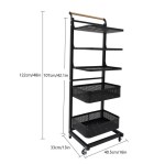 5-рівнева полиця для зберігання Cncest, чорна, вуглецева сталь, 40,5x33x122 см, вантажопідйомність 7,5 кг, з колесами та кошиками, фото 4