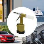 Пневматичний заклепувальник має швидкознімний клапан, який дозволяє швидкому циліндру повернутися до високошвидкісного складання. Пляшка для збору заклепок може автоматично збирати використані заклепки, щоб підтримувати верстак у чистоті та полегшувати переробку.