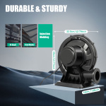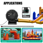 Безпечний у використанні: Клас захисту від пилу IP44 і рівень ізоляції E забезпечують безпеку людей і машин під час використання і знижують ризик нещасних випадків. Заощаджує місце: Він має розміри 12,79*7,08*13,77 дюйма з невеликою площею. Ви можете розмістити його на складі, в кутку магазину та інших невеликих місцях, не займаючи багато місця для зручного зберігання, коли він не використовується. Тихо: Чудовий обміднений алюмінієвий двигун може забезпечити достатню потужність вітру, не виробляючи занадто сильного шуму (80 дБ). Ви можете впевнено використовувати його на відкритому повітрі, не турбуючись про шум, який вплине на взаємодію з клієнтом. Рівні краї: Весь корпус розроблений із закругленими краями, що може запобігти подряпинам навколо та пошкодженню вашої надувної моделі. Отвори для охолодження: Вони розташовані збоку від вентилятора, що забезпечує ефективне розсіювання тепла та хорошу тривалу роботу. Піднята ручка: Він розташований у верхній частині повітродувки і дозволяє легко переміщатися в різні місця. Стабільна основа: Прямокутна основа з монтажними отворами має розміри 8,66*7,08 дюймів, що робить весь вентилятор більш стабільним і його нелегко хитатися. Висока ефективність роботи: Він має потужність 370 Вт, швидкість обертання 2800 об/хв, максимальний тиск вітру 1250 Па та максимальний об’єм повітря 340 м³/год, які забезпечують вам сильну силу вітру та швидке надування ваших надувних моделей. Стабільна робота: Шарикопідшипники, статор і ротор, покриті міддю алюмінієві дроти обмотки з силіконової сталі можуть зменшити тертя та температуру під час роботи, забезпечуючи стабільну роботу та зменшуючи опір перегріву та навантаженню. Технічні характеристики Матеріальний: ПЕ, залізо, алюміній з мідним покриттям, кремнієва сталь Лікування: Лиття під тиском Колір: Чорний. Стиль: Сучасний Тип двигуна: Алюміній з мідним покриттям Потрібна збірка: Ні. Штекер: Стандарт ЄС Напруга: 220V Виступ: 370 Вт Швидкість обертання: 2800р/хв Рівень шуму: 80 дБ Максимальний тиск вітру: 1250 па Максимальний об'єм повітря: 340 м³/год/12007 футів³/год Пилонепроникний: IP44 Ступінь ізоляції: E Відповідний розмір надувної моделі: Надувні аркові моделі довжиною 3-10 м/9,84-32,8 футів; Надувні будиночки розміром приблизно 10㎡/107,63 футів² Зовнішній діаметр виходу повітря: 10 см/3,93 дюйма Розмір основи: 22*18 см/8,66*7,08 дюймів Вага брутто: 3,7 кг/8,15 фунтів Вага нетто: 3,35 кг/7,38 фунтів Розмір продукту: 32,5*18*35 см/12,79*7,08*13,77 дюймів Розмір пакета: 33*19,5*37 см/12,99*7,67*14,56 дюймів Вміст пакету 1*Надувний вентилятор 1*Китайська інструкція Технічні характеристики | Матеріал | ПЕ, залізо, алюміній з мідним покриттям, кремнієва сталь | Лікування | Лиття під тиском | | Колір | Чорний. | Стиль | Сучасний | | Тип двигуна | Алюміній з мідним покриттям | Потрібна збірка | Ні. | | Штекер | Стандарт ЄС | Напруга | 220V | | Сила | 370 Вт | Швидкість обертання | 2800р/хв | | Рівень шуму | 80 дБ | Максимальний тиск вітру | 1250 па | | Максимальний обсяг повітря | 340 м³/год/12007 футів³/год | Пилонепроникний | IP44 | | Рівень ізоляції | E | Відповідний розмір надувної моделі | Надувні аркові моделі довжиною 3-10 м/9,84-32,8 футів; Надувні будиночки розміром приблизно 10㎡/107,63 футів² | | Зовнішній діаметр виходу повітря | 10 см/3,93 дюйма | Розмір основи | 22*18 см/8,66*7,08 дюймів | | Вага брутто | 3,7 кг/8,15 фунтів | Вага нетто | 3,35 кг/7,38 фунтів | | Розмір продукту | 32,5*18*35 см/12,79*7,08*13,77 дюймів | Розмір уп