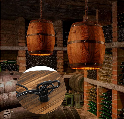 • Ретро промисловий підвісний світильник в дизайні дерев'яної винної бочки, креативний вигляд не тільки освітлення, але і прикраси для вашого будинку.
