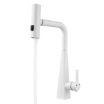 Ви можете обертати носик або натискати кнопку (після обертання у вертикальний режим), щоб переключатися між режимами подачі води (м’який вихід води, режим пістолета-розпилювача, режим дощу), що відповідає різним потребам миття фруктів, овочів, каструль і посуду. .