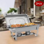 Фуршетний набір для смаження Cncest 2 шт. з 4 паливними баками, нержавіюча сталь 410, 3,7 кварти, сріблястий, складні ніжки