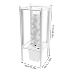 Механізм баштової гідропоніки дозволяє розподіляти всі рослини вертикально, значно збільшуючи рухливість кисню до кореня та сприяючи росту рослин. 4 світлодіодні лампи випромінюють ультрафіолетове світло і забезпечують освітлення 360 градусів протягом 24 годин, тому кожна рослина отримує світло, необхідне для її росту.