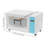 Міцний і якісний Він виготовлений з високоякісної нержавіючої сталі та оцинкованого листа з процесом запеченої емалі, який є стійким до іржі та високою міцністю, що забезпечує його красу та тривале використання. Сучасний зовнішній вигляд Біло-блакитна колірна гамма, прямокутна форма та плавні лінії надають цьому продукту стильного зовнішнього вигляду, що дозволяє легко адаптувати його до різних місць. Потужна функція Поєднання ультрафіолетового світла та технології сушіння гарячим повітрям 167°F забезпечує очищення на 360° для надійного захисту здоров’я. Налаштовуваний дизайн Дві полиці дозволяють розбирати та регулювати висоту внутрішніх полиць для вашої зручності залежно від потреб сушіння різних речей. Крім того, настроювані налаштування часу сушіння та дезінфекції дають вам можливість вибрати правильний режим роботи залежно від кількості одягу. Тихо Він працює тихо (45 дБ) і не заважає вашому повсякденному житті. У спальні, їдальні чи вітальні він може працювати тихо й безшумно, захищаючи здоров’я вашої родини. Легко чиститься Завдяки гладкій поверхні, простій конструкції та знімній полиці з нержавіючої сталі ви можете легко витерти забруднення м’якою тканиною (не входить в комплект). Нековзні ніжки Чотири пластикові ніжки знизу забезпечують стійкість виробу, запобігають випадковому перекиданню та захищають ваш стіл від подряпин. Ручка. Ергономічна ручка дозволяє зручно відкривати і закривати двері. Заявка Його можна використовувати для дезінфекції білизни, шкарпеток, косметичних інструментів, пляшок, чашок тощо. Він підходить для будинків, спа-салонів, салонів краси, манікюрних салонів, перукарень, клінік та інших місць. Технічні характеристики Колір: Біло-блакитний Матеріальний: Нержавіюча сталь, оцинкований лист, загартоване скло, пластик Процедура: лак для запікання Форма: Прямокутна Тип кріплення: Таблиця Режим керування: Сенсорний тип Джерело живлення: Провідний Тип штекера: Стандарт ЄС Кількість рівнів: 2 Потенціал: 10 л/2,2 гал Температура сушіння: 75 °C/167 °F Напруга: 220 V Виступ: 160 Вт Потужність УФ лампи: 4 W Шум: 45 дБ Тип дисплея: СВІТЛОДІОД Довжина мережевого кабелю: прибл. 1 м/3,28 футів Розмір виробу (включаючи ручку): 33,5 x 22 x 20 см/13,19 x 8,66 x 7,87 дюймів Розмір упаковки: 37 x 26,5 x 24,5 см/14,57 x 10,43 x 9,65 дюймів Вага брутто: 2,6 кг/5,73 фунта Вага нетто: 2,47 кг/5,45 фунтів Обсяг поставки 1* Дезінфекційна шафа 1* Посібник англійською мовою 2* полиці Технічні характеристики | Колір | Біло-блакитний | Матеріал | Нержавіюча сталь, оцинкований лист, загартоване скло, пластик | | Процедура | лак для запікання | Форма | Прямокутна | | Тип кріплення | Таблиця | Режим контролю | Сенсорний тип | | Джерело живлення | Провідний | Тип штекера | Стандарт ЄС | | Кількість рівнів | 2 | Ємність | 10 л/2,2 гал | | Температура сушіння | 75 °C/167 °F | Напруга | 220 V | | Сила | 160 Вт | Потужність УФ лампи | 4 W | | Шум | 45 дБ | Тип дисплея | СВІТЛОДІОД | | Довжина мережевого кабелю | прибл. 1 м/3,28 футів | Розмір продукту (включаючи ручку) | 33,5 x 22 x 20 см/13,19 x 8,66 x 7,87 дюймів | | Розмір упаковки | 37 x 26,5 x 24,5 см/14,57 x 10,43 x 9,65 дюймів | Вага брутто | 2,6 кг/5,73 фунта | | Вага нетто | 2,47 кг/5,45 фунтів | Поради щодо продукту 1. Перед увімкненням пристрою закрийте дверцята. 2. Будь ласка, не відкривайте дверцята часто під час роботи, щоб уникнути впливу на ефект дезінфекції. 3. Розміщувати в шафі легкозаймисті та вибухонебезпечні предм