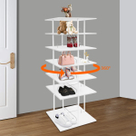 Це дозволяє акуратно розташувати різні види взуття. Відстань між рівнями 8,26 дюйма і 17,32 дюйма забезпечує простір для взуття різної висоти, наприклад, кросівок і високих черевиків. Крім того, дно цієї полиці для взуття можна повертати на 360°, щоб полегшити вибір, доступ і зберігання взуття чи інших предметів.