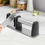 Точильний камінь в основному виготовлений із міцної та довговічної харчової нержавіючої сталі та ABS, тож ви можете бути впевнені, що він не торкатиметься ножів. Вибрані точильні камені з вольфрамової сталі, алмазу та кераміки дозволяють швидко полірувати ваші ножі та ножиці.