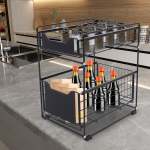 Двоярусна полиця для зберігання Cncest, чорна, вуглецева сталь, 37,4x28,2x44 см, вантажопідйомність >10 кг, для ванної та кухні