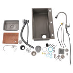1 х раковина, 1 х висувний змішувач, 1 х змішувач з системою очищення води, 1 х обробна дошка, 1 х сушарка для посуду