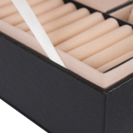Органайзер для ювелірних виробів Cncest 2-рівневий, чорний, 23x17x9 см, ПВХ, МДФ, оксамит, замок безпеки, знімний роздільник, фото 6