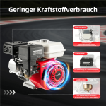 Двигун оснащений високочутливим датчиком рівня масла, сигналізатором рівня масла і функцією пам'яті. Коли паливо в баку закінчується, він автоматично вимикається, щоб захистити машину та вашу безпеку. Він також має режим повітряного охолодження з охолоджуючими отворами в корпусі, що знижує робочу температуру двигуна та забезпечує хорошу продуктивність.