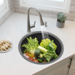 Стабільна якість Цей виріб виготовлений переважно з потовщеної високоякісної нержавіючої сталі 304. Завдяки нанопокриттю, цільному формуванню та процесу розтягування, він стійкий до корозії, термостійкий, не легко деформується та довговічний. Велика зона для миття посуду Збільшена та глибиною 36,8 x 19,1 см мийка вміщує певну кількість чашок, тарілок та столових приборів (окрім усього іншого), що значно підвищує ефективність миття посуду. Оптимальне використання простору робить її ідеальною для кемперів та барів. Зручний для користувача Тиха накладка ефективно зменшує шум крана на раковині. Потовщене антиконденсаційне покриття ефективно запобігає конденсації водяної пари та перепадам температур. Це видаляє вологу з шафок і створює тихе та гігієнічне середовище на кухні. Швидкий дренаж Збільшений зливний отвір та відповідна зливна труба дозволяють воді швидко стікати, тим самим зменшуючи її накопичення. Легке прибирання без зусиль Плавні, закруглені кути та краї запобігають осіданню бруду. Нанопокриття забезпечує швидке та легке видалення жиру з раковини без прилипання. Просто змийте водою або протріть тканиною (не входить до комплекту). Високі переливні отвори Така конструкція запобігає втратам води, якщо ви забудете вимкнути кран, і запобігає намокання підлоги. V-подібна водостічна труба Унікальна V-подібна структура ефективно запобігає зворотному потоку запахів і забезпечує свіже повітря на кухні. Кошик для ситечка Він утримує тверді залишки, запобігає засміченню труб і полегшує очищення. Заявка Універсальне використання в будинках, ресторанах, підвалах, барах, кухнях, кондитерських, кафе, мобільних будинках, готелях, гаражах тощо для миття посуду, овочів та фруктів (не входять до комплекту). Технічні характеристики Стиль: Сучасний Форма: Навколо Колір: Чорний. Матеріальний: Нержавіюча сталь 304 Процедура: Нанопокриття, цільне лиття, розтягування Потрібна збірка: Так. Тип кріплення: Накладний монтаж, прихований монтаж, прихований монтаж Товщина: 1 мм Діаметр (для поверхневого монтажу): 33,5 см Розмір продукту (Д x В): 36 х 19 см Розмір упаковки: 40 х 40 х 21 см Вага брутто: 2,9 кг Вага нетто: 2,76 кг Обсяг поставки 1 х кругла кухонна мийка 1 х кошик для ситечка 1 x зливна труба 1 х кришка для раковини Технічні характеристики | Стиль | Сучасний | Форма | Навколо | | Колір | Чорний. | Матеріал | Нержавіюча сталь 304 | | Процедура | Нанопокриття, цільне лиття, розтягування | Потрібна збірка | Так. | | Тип кріплення | Накладний монтаж, прихований монтаж, прихований монтаж | Товщина | 1 мм | | Діаметр (для поверхневого монтажу) | 33,5 см | Розмір продукту (Д x В) | 36 х 19 см | | Розмір упаковки | 40 х 40 х 21 см | Вага брутто | 2,9 кг | | Вага нетто | 2,76 кг | Поради щодо продукту 1. Будь ласка, перевірте стиль та розмір перед покупкою. 2. Щоб продовжити термін служби, уникайте подряпин на поверхні гострими предметами. 3. Зверніть увагу, що цей товар включає лише комплект раковини та не включає предмети, показані на зображенні, такі як: Наприклад. страви. |
