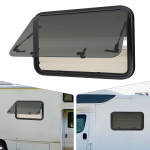 Розсувне вікно для автобудинку Cncest 82,54x52,54 см, загартоване скло, 85° кут відкриття, білий+чорний, з монтажним комплектомВ наявності