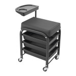 Висувні шухляди забезпечують легкий доступ до ваших інструментів у будь-який час, що спрощує щоденне зберігання інструментів та доступ до роботи. Сидіння виготовлене з ПВХ з м’яким та зручним наповнювачем з піни, що зменшує втому клієнта.
