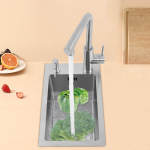 Мийка з нержавіючої сталі (46,7 x 28,0 x 21,0 см) пропонує багато місця для багатьох кухонних речей та предметів домашнього вжитку, що дозволяє завантажити велику кількість посуду. Мийка глибиною 21,9 см забезпечує миття без бризок.