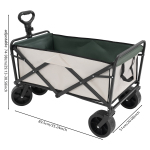 Міцний Виготовлений з вуглецевої сталі та поліестерової тканини 800D, виготовлений методом лиття пластику під тиском, цей виріб є ударостійким, стійким до іржі та міцним, що забезпечує тривалий термін служби. Допомога при зберіганні Він підходить для зберігання закусок, книг, канцелярського приладдя, іграшок (не входять до комплекту) тощо та забезпечує чітке та охайне зберігання. Висока вантажопідйомність Завдяки високоякісним матеріалам та міцній конструкції, цей ручний візок може витримувати 115 кг, що забезпечує безтурботне використання. Регульована конструкція Ви можете регулювати висоту ручки (74-98 см) за потреби, щоб забезпечити комфортне тягнення. Ручка із застібкою-фіксатором забезпечує надійне кріплення. Крім того, ручка регулюється на 90°. Носіть зручно Завдяки складній конструкції його можна скласти та зберігати в багажнику, що полегшує транспортування на вулиці. Гладкі краї Закруглені та гладкі краї не лише надають виробу естетичного вигляду, але й підвищують безпеку. Універсальні передні колеса Два універсальні передні колеса з гальмами дозволяють вільне керування та блокування, забезпечуючи таким чином більшу свободу рухів. Сумки для зберігання з подвійним відділенням Вони підходять для зберігання дрібних предметів. Крім того, вони підходять для гарячих напоїв і таким чином запобігають розливанню води під час транспортування. Заявка Підходить для активного відпочинку, пляжу, саду, парку, кемпінгу або шопінгу. Підходить для зберігання іграшок, закусок, книг, канцелярського приладдя тощо. Технічні характеристики Колір: Хакі Стиль: Сучасний Форма: Прямокутна Матеріальний: Вуглецева сталь, поліестерова тканина 800D Процедура: пластикові шприци Потрібна збірка: Ні. Тип кріплення: Окремо стоячий Кількість коліс: 4 Вантажопідйомність: 115 кг Діаметр колеса: 20,32 см Розмір продукту (Д х Ш): 89,5 x 51 см Регульована висота ручки: 74–98 см Розмір упаковки: 76,5 x 58,5 x 17,5 см Вага брутто: 9,2 кг Вага нетто: 8,74 кг Обсяг поставки 1 х складаний ручний візок Технічні характеристики | Колір | Хакі | Стиль | Сучасний | | Форма | Прямокутна | Матеріал | Вуглецева сталь, поліестерова тканина 800D | | Процедура | пластикові шприци | Потрібна збірка | Ні. | | Тип кріплення | Окремо стоячий | Кількість коліс | 4 | | Несуча здатність | 115 кг | Діаметр колеса | 20,32 см | | Розмір продукту (Д x Ш) | 89,5 x 51 см | Регульована висота ручки | 74–98 см | | Розмір упаковки | 76,5 x 58,5 x 17,5 см | Вага брутто | 9,2 кг | | Вага нетто | 8,74 кг | Поради щодо продукту 1. Зверніть увагу, що закуски, книги, канцелярське приладдя та іграшки не включені. 2. Через ручне вимірювання можливі незначні відхилення кольору. Будь ласка, переконайтеся, що у вас немає жодних зауважень перед замовленням. |