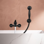 Чорна кнопка дозволяє перетворити воду зі змішувача ванни на ручний душ (підніміть кнопку, щоб використовувати душ, і натисніть кнопку, щоб використовувати змішувач). Це просто та практично та запобігає відкриванню або замиканню неправильного перемикача через складні операції.