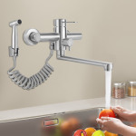 Настінний кухонний змішувач, змішувач з розпилювачем, змінний змішувач для кухонних мийок – Срібний, фото 8