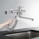 Настінний кухонний змішувач, змішувач з розпилювачем, змінний змішувач для кухонних мийок – СрібнийВ наявності