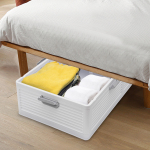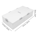 Міцний і довговічний Виготовлений з високоякісного поліпропілену, цей продукт є міцним, зносостійким і гарантує тривалий термін служби. Допомога при зберіганні Ви можете використовувати його для зберігання рушників, альбомів або книг (не входять в комплект) тощо, щоб підтримувати порядок і наводити порядок у вашій кімнаті. Економія місця Його плоский дизайн (висота 9,4 дюйма) дозволяє максимально використовувати простір під ліжком. У той же час його можна легко скласти та непомітно зберігати, коли він не використовується, що робить його ідеальним поєднанням практичності та економії місця. Вишуканий дизайн Двостороння верхня кришка відкривається з обох сторін, щоб ви могли легко забрати свої речі. Водночас кришка захищає предмети в ящику від пилу та вологи. Захист конфіденційності 6 пряжок герметично закривають цей продукт, так що конфіденційність предметів у коробці захищена, і ви можете зберігати їх спокійно. Нижній шків Дозволяє виробу плавно рухатися, не пошкоджуючи підлогу. Бічна ручка Робить штовхання та витягування виробу зручнішим. Внутрішня коробка Може використовуватися для захисту та осушення камфорного дерева від вологи. Технічні характеристики Колір: Білий Стиль: Сучасний Форма: Прямокутна Матеріальний: PP Тип кріплення: Окремо стоячий Потрібна збірка: Так. Розмір продукту: 101*51,5*24 см/39,7*20,2*9,4 дюйма У комплекті 1 * коробка для зберігання 1* камфорне дерево Додаткові аксесуари для монтажу Технічні характеристики | Колір | Білий | Стиль | Сучасний | | Форма | Прямокутна | Матеріал | PP | | Тип кріплення | Окремо стоячий | Потрібна збірка | Так. | | Розмір продукту | 101*51,5*24 см/39,7*20,2*9,4 дюйма | Поради щодо продукту 1 Зверніть увагу, що наш продукт не містить жодних інших елементів. 2. Перед замовленням уважно перевірте розмір. 3. Будь ласка, дозвольте невелику різницю в кольорі через світло та похибку 1-3 см через ручне вимірювання, і переконайтеся, що ви не заперечуєте перед замовленням.