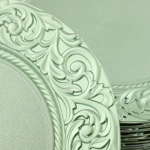 Проста кругла форма, елегантний зелений колір та гарно рельєфний обідок роблять ці вироби першокласною прикрасою вашого столу, особливо в поєднанні з іншими наборами посуду.